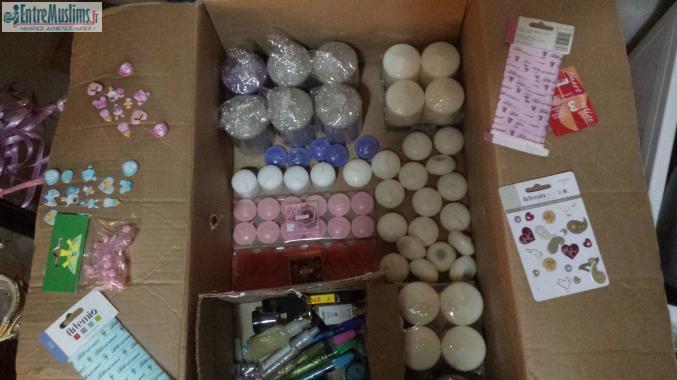 bougies de tailles et couleurs differentes ainsi que de la decoration tels que paillettes de differentes couleurs, stylos pailletes aussi de differentes couleurs, rubans et stickers