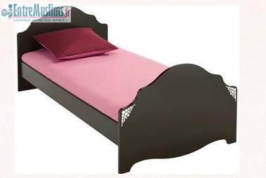 Lit (90cm x 190cm) + table de chevet.Noir LADY DOLL de Conforama. Vendu avec le Sommier
