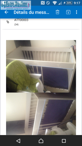 Je vends un lit bébé en bois blanc et petit liseré bleu. Vendu avec tous les barreaux qui sont facilement détachables. En bon état. Contact par mail Barack Allah O
