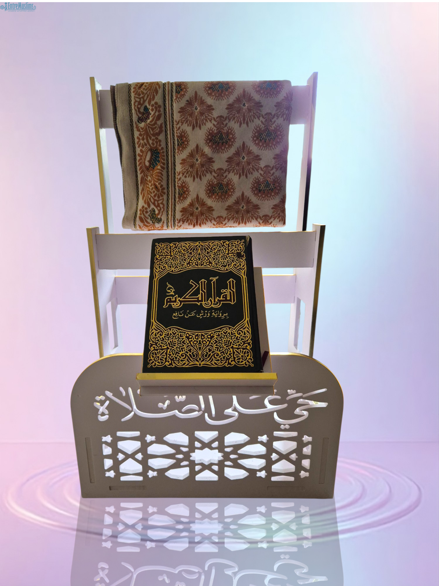 Salam aleikoum je vends porte tapis de prière neuf blanc finition doré, hauteur 77 longueur 48 profondeur 33