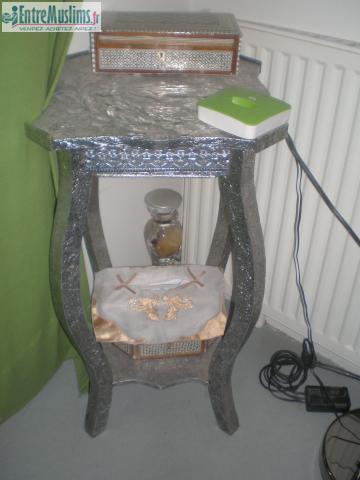 Salem ou aleikoum, je vends cette belle table argentée décorative en bon état qui vient de la Syrie.