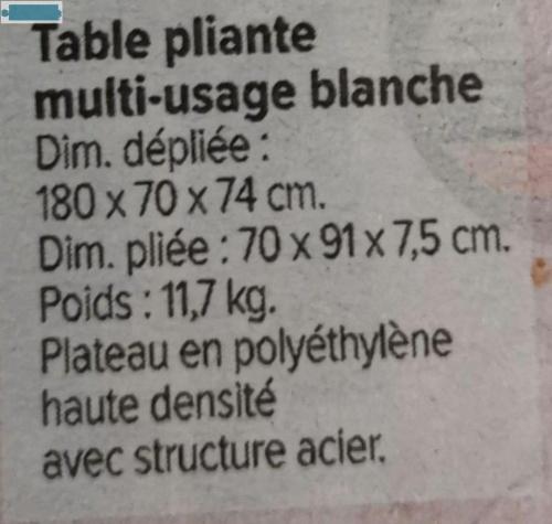 Je vends 5 tables pliables neuves sous emballage, jamais servi.