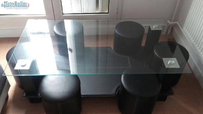Suite un déménagement, je met en vente une superbe table basse de salon avec 6 poufs