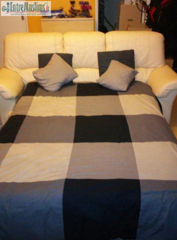 Vends Canapé en vrai cuir de buffle, couleur beige + repose-pieds. Convertible, matelas Bultex confortable. Valeur 3000 euros. Excellent état. 430 euros à débattre.