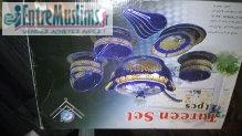 je vends un coffret de bol bleu complet pour la soupe, un breau d'eau avec les verres pour boissons, des verres a café comme sur la photo.
