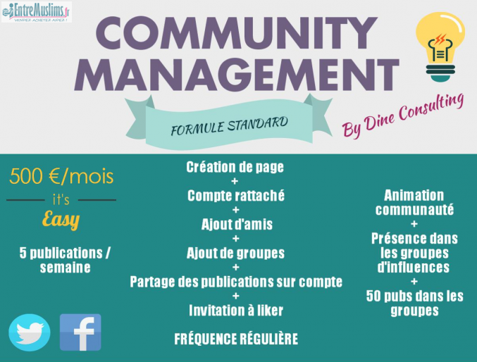 - Formule basique à 290€/mois : pour l'entretien et la diffusion d'informations sur la page