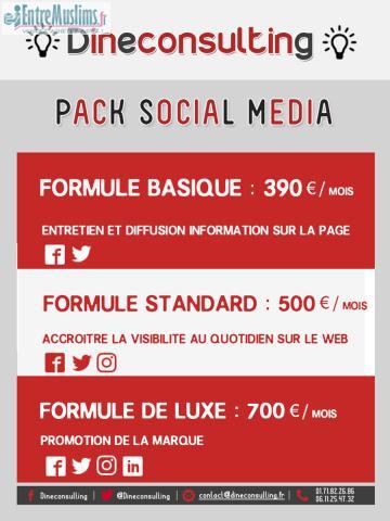 - Formule basique à 390€/mois : pour l'entretien et la diffusion d'informations sur la page