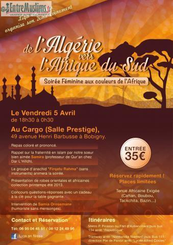 Liqa an Nissa, L'évènementiel 100% au Féminin vous convie le Vendredi 5 Avril 2013 de 18h30 à 0h30 à Sa Soirée Féminine riche en Cultures et en Saveurs, "De l'Algérie vers l'Afrique du Sud".