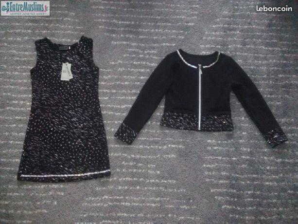 Je vends une belle robe noire pailletée en argent avec sa veste ou disant son boléro jamais portés. Taille 6 - 8 ans.