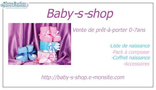 Voilà je viens de commencer mon ptit commerce je vends du prêt-à-porter de 0 à 7 ans et aussi des accessoires et encore plein de nouveautés qui vont arriver début avril in sha'Allah à bas prix, pouvez-vous partagez ma page et aimer svp la oummah afin que je puisse me faire connaitre bi idhni'Llah, sur facebook baby s shop et le site c'est http://baby-s-shop.e-monsite.com.