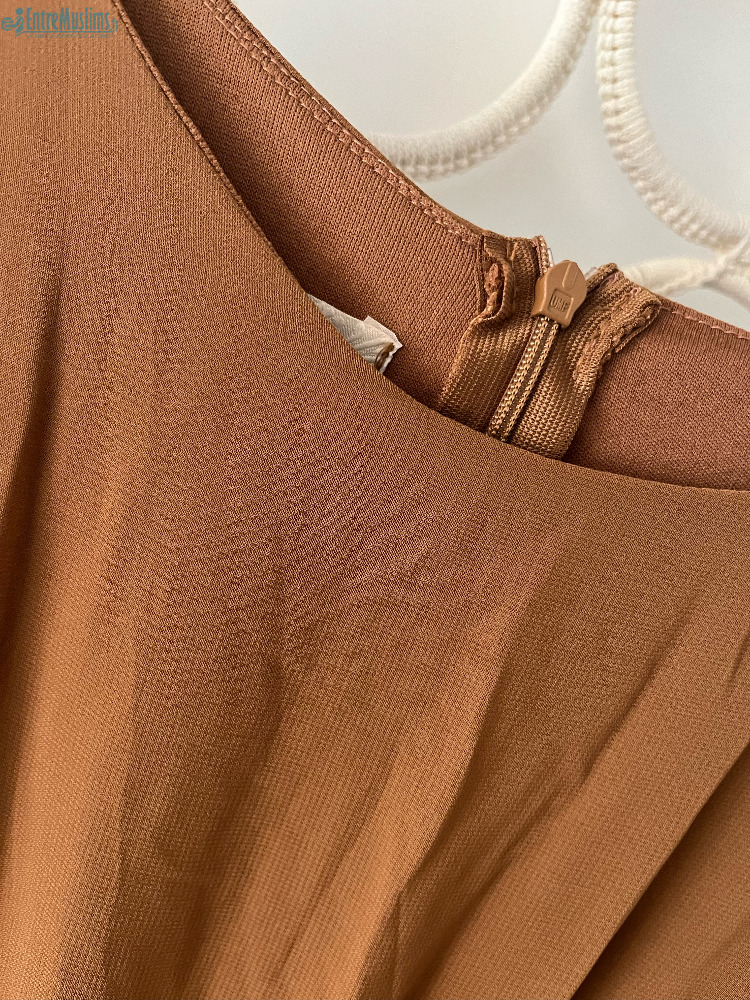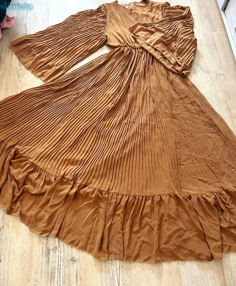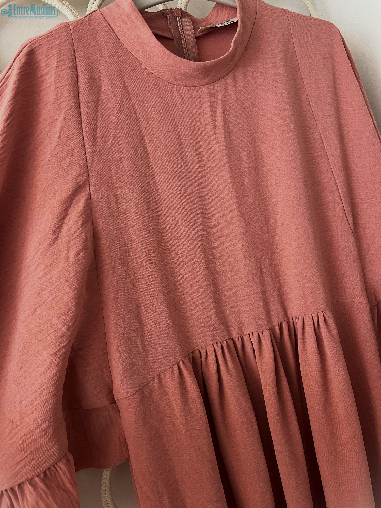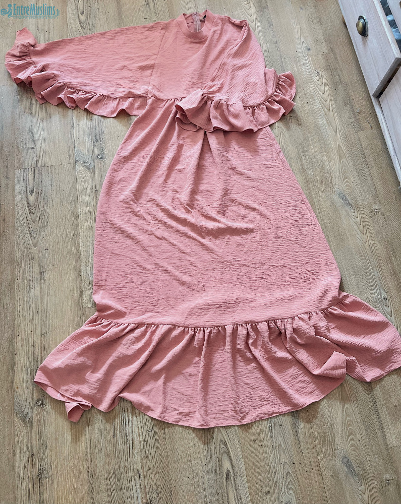 abaya vieux rose : les manches n'arrivent pas jusqu'aux poignets, non transparente
