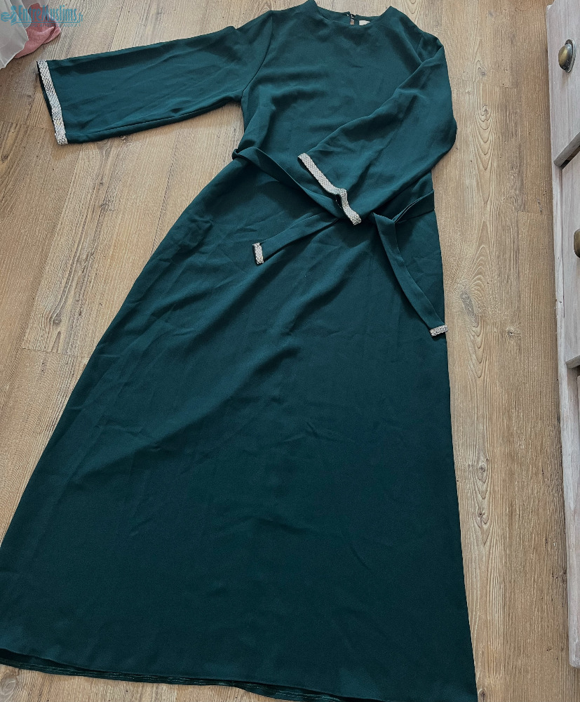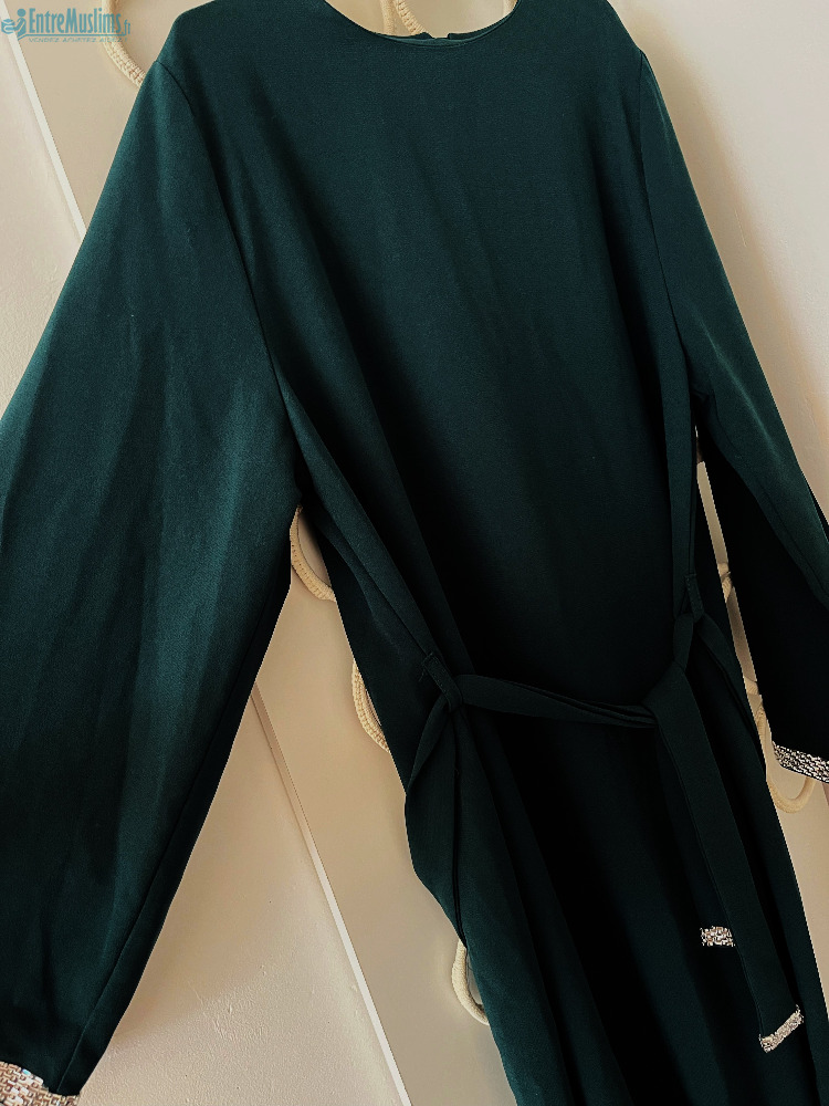 abaya vert sapin et strass argentés, tissus un peu épais, neuve jamais portée