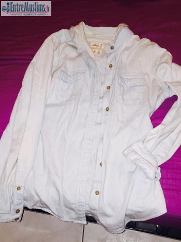 Je vends le veste en jeans a 15 euros jamais porter taille m les deux chemises en jeans la bleu foncé est a 10euros taille xl et la blanche est 10euros également taille 40 chemise a carreaux taille L 8euros le blazer rose 15 euros jamais porter taille m la veste noir et blanche 10euros taille 2 et enfin le manteau marron 12 Euros taille unique
