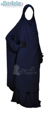 Jilbab 2 pièces femme, jupe et demi jilbab, en tissu "Royal" manche 3/4 avec bandeau intégré et cache menton.