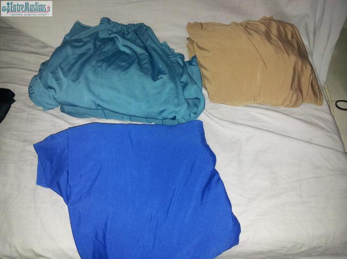 Je vends 3 Jilbeb de prière couleur bleu roi,turquoise et beige.