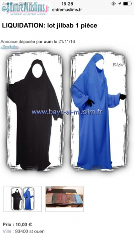 lot de 27 jilbabs 1 pièce neuf dans leur emballages à 270e soit 10e la pièce
