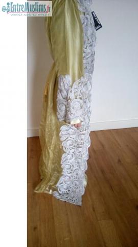 As Salêm Alaykum wa Rahmatúllah Wa Barakatú, je vend cette robe orientale neuve vert pomme satiné neuve encore étiquette. Jamais portée