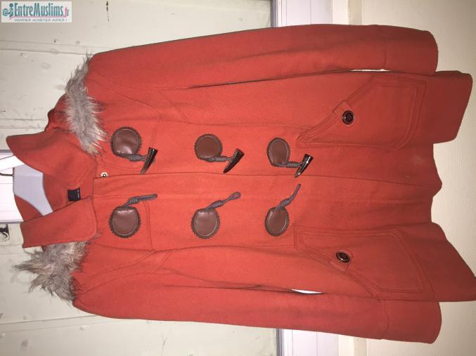 Le manteau orangé taille 40 est à 15 euros,nikel sans taches sans trous COMME NEUF marque new look