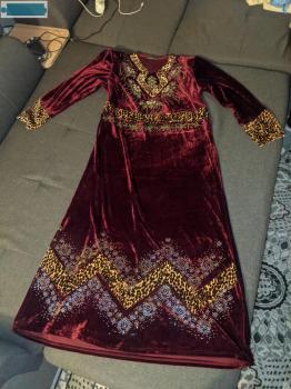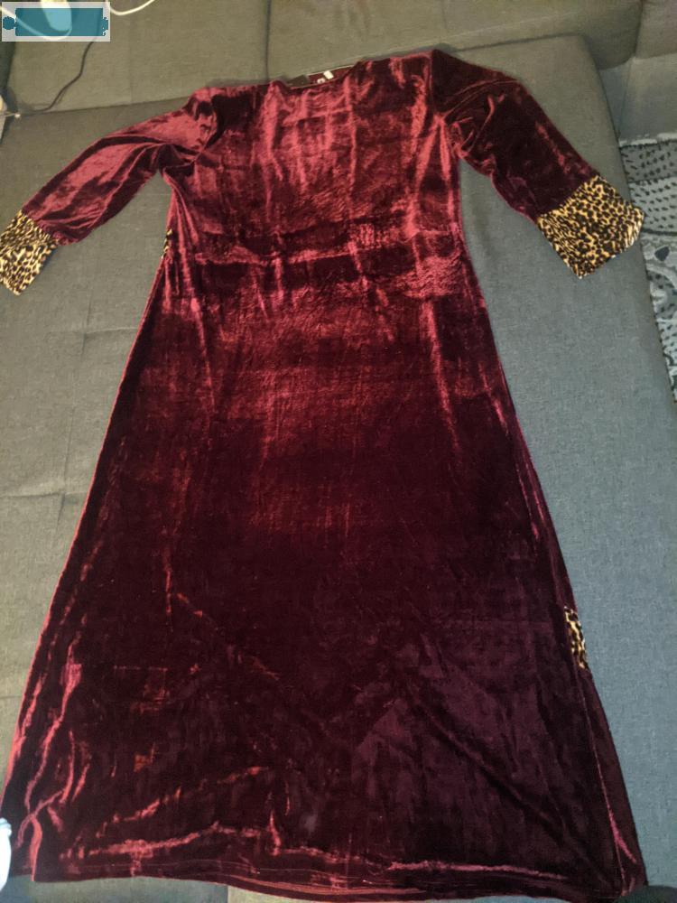 Vend robe longue en velours légère avec perles jamais été mise couleur violet sombre taille 44 longueur 1m65