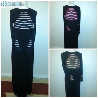 Je vends de jolies abayas , elles sont toutes noires seul les strass Changent selon les modèles.