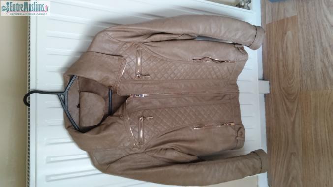 Bonjour Je vend ma veste en cuire beige taille 2 légère vrai cuir porter 2 ou 3 fois