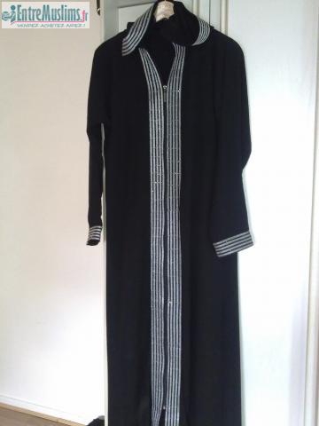 vend abaya dubai avec capuche noir et argenté taille 56 pour taille max 1m65