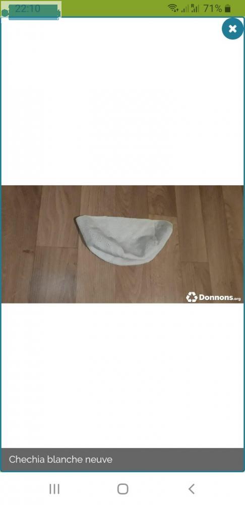 Chechia blanche jamais portée si ça peut servir à quelqu'un