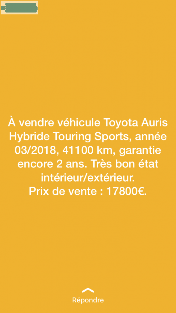Je vends ma Toyota Auris Touring Sports Hybride 136H.