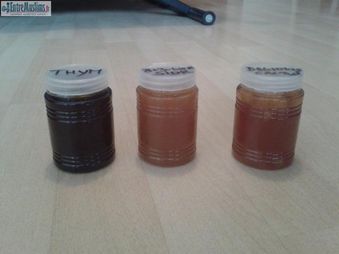 -MIEL DE DAGHMOUS du Maroc ( " cactus" ) 250 gr : 12 euros / 500 gr : 22e (lutte contre asthme allergique, angine, maux de gorge, aide à la fertilité etc) - -MIEL DE SIDR (JUJUBIER) du Maroc 250 gr : 10 euros/ 500gr : 18 e (lutte contre maux d'estomac, de foi, ulcères, bon pour rouqyya, fertilité féminine etc )