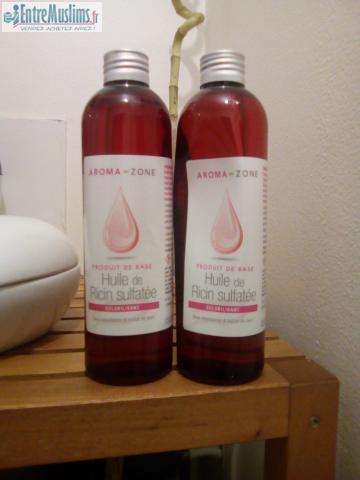 Salam alaykoum suite à une erreur d'aroma zone ils m'ont envoyé de l'huile de ricin sulfater qui permets de créer vous memes vos champoing et soins j'en es 2 neuf date d'expiration mars 2017 à venir chercher mitry mory ou Aulnay-sous-Bois c'est 6€ les 2 flacons de 250ml, voir sur internet les bienfaits de l'huile de ricin qui favorise la pousse des cheveux et cils c'est du sulfater donc assez concentré....j'accepte que mon annonce soit diffuser sur FB barakallahou fikoum