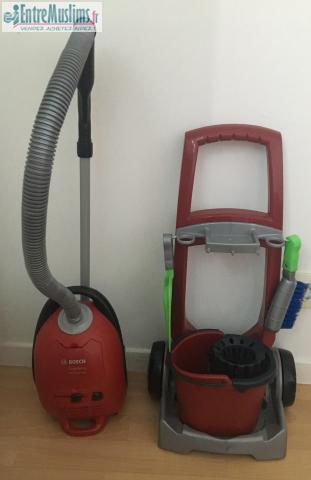 Je vends un aspirateur et un chariot à ménage (manque serpillere et balai)