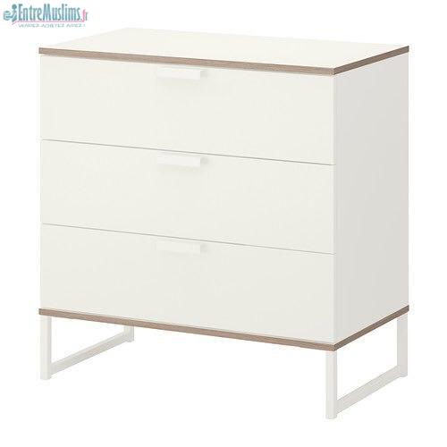 Vends commode blanc gris clair 3 tiroirs trysil bonne état 40 eur