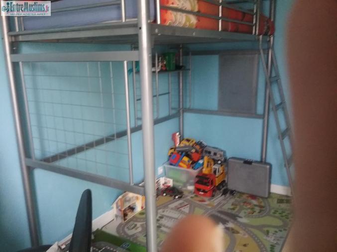 Salam alaykoum je vends lit mezzanine 60€ 90×190 alu bon état solide avec tablette bureau et un appareil à pop cake pour du saléou du sucré neuf dans son carton jamais servie 15€