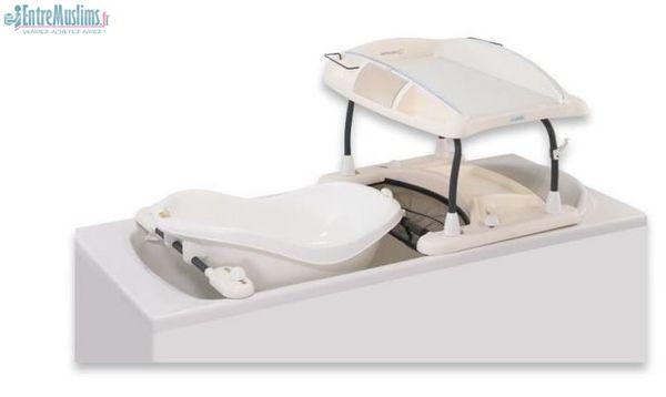 Idéal pour les petits espaces, ce plan se fixe directement sur la baignoire et la baignoire de bébé s'installe aussi bien à gauche qu'à droite du plan. Le tout se retire facilement de la baignoire.