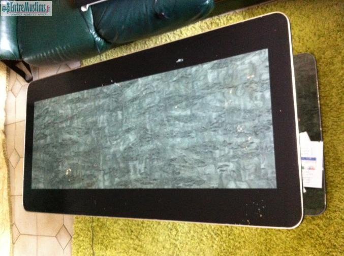 il existe quelques petites raillures sur la table et trace de col blanc resté au pied gauche de la table