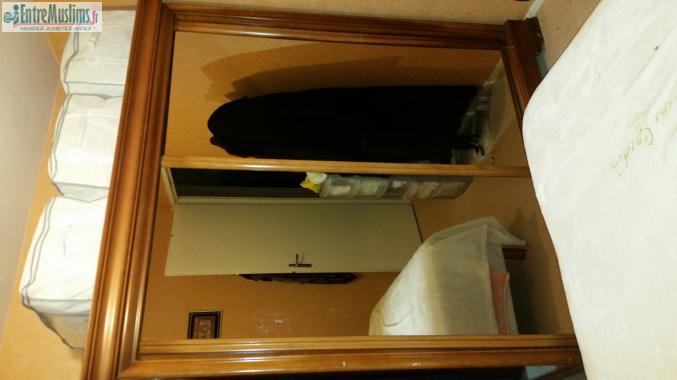 je donne un armoire avec double porte coulissante miroir et une petite bibliothèque à portes coulissantes.