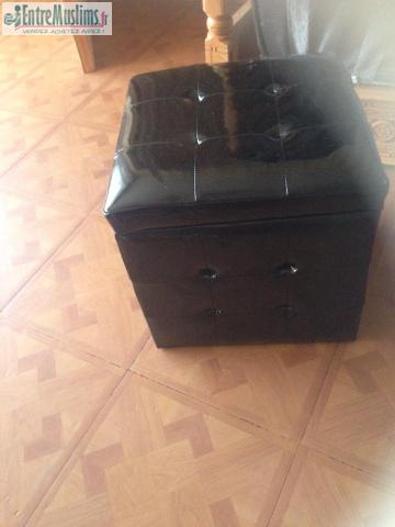 As salam aleikoum je vend un pouff de rangement noir vernis trés bonne état acheter à conforama .