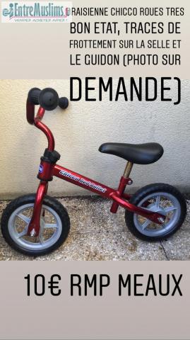 Draisienne chicco roues tres bon etat. Quelques traces de frottements sur la selle et le guidon