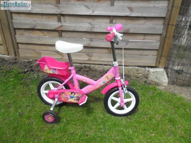 VELO ROSE PRINCESSES DE DISNEY EN BON ETAT AVEC CASQUE ET ACCESSOIRES TOUT NEUF