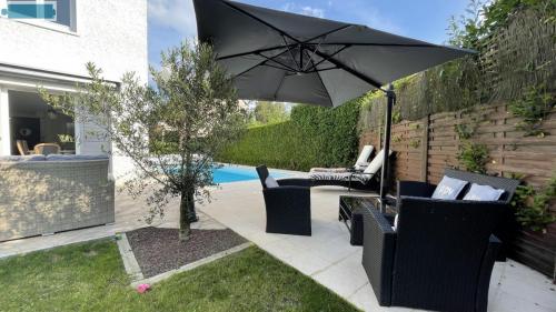 Ma piscine est chauffée à 28 degrés. Sans aucun vis à vis ! Elle est entretenue au brome ( meilleur pour la peau et les cheveux) Profitez de deux terrasses ombragées pour vous détendre au calme.