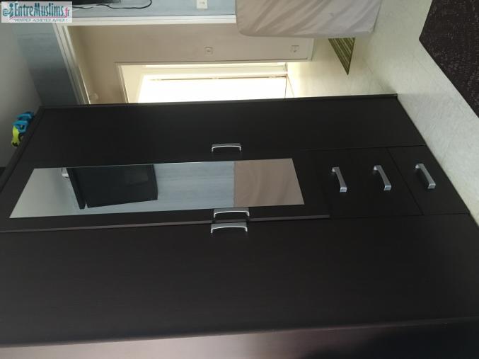 Salem Aleykom , pour cause de déménagement je vends cette armoir en très bon avécu 3 porte , la première porte avec 4 étagères les deux autres portes avec un etagere et côté pondrie , le lit est en bon état général . Le