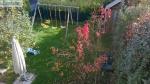 Le jardin agrémenté de plusieurs fruitiers dispose d'une grande terrasse avec barbecue en pierre, d'un abri en bois et d'un portique de balançoires pour enfants.