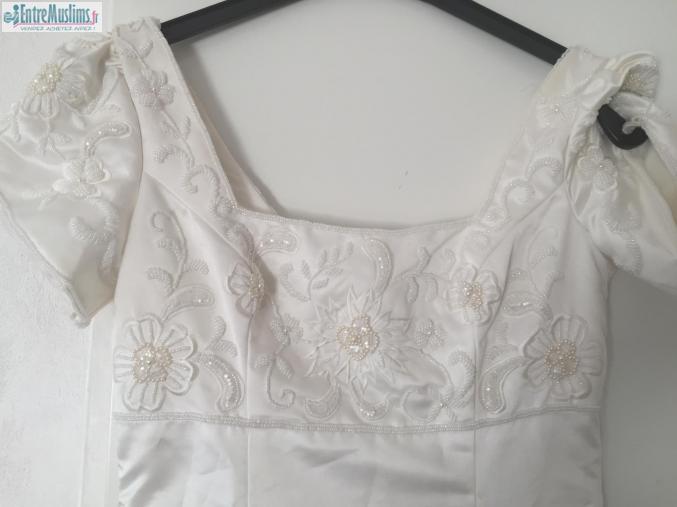 Robe blanc cassé taille 38 avec gants. Vous pouvez rajouter un cerceau.