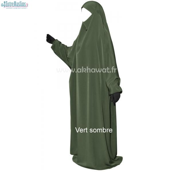 Jilbab al bassira vert de gris (couleur discret ) taille 2 manche classique tissu microfibre koshibo .. comme neuf vendu car je me suis tromper de taille