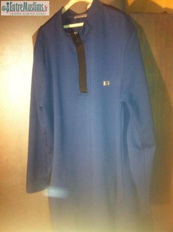 Qamis modèle "Bleu Boss" Qaba'il taille L à vendre. De couleur bleu indigo avec présence de noir sur les épaules & les poches. En très bonne état.