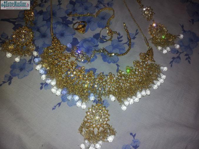 Vends parure indienne comprenant: 1 collier, 1paire de boucle d'oreille, 1 bijoux pour le nez, 1 bague et 1bijoux pour tête.
