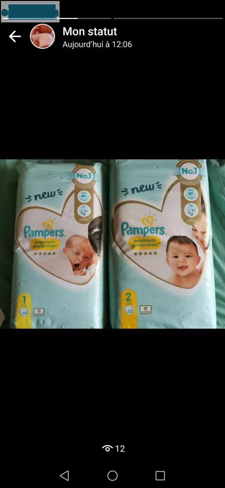 Je fais don de paquet de couches Pampers Prenium age 1 et 2. Neuf jamais servis.