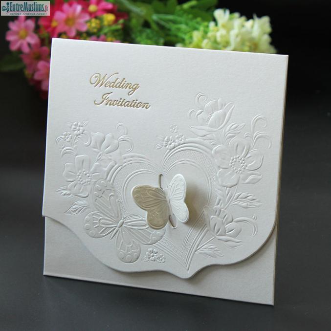 assalam aleikoum wa ramatoullah ...invitations de mariage lot de 80 cartes couleur ivoire satine avec un papillon en boucle entoure de relief 3D embossage de fleur ideal pour annoncer votre mariage insha allah