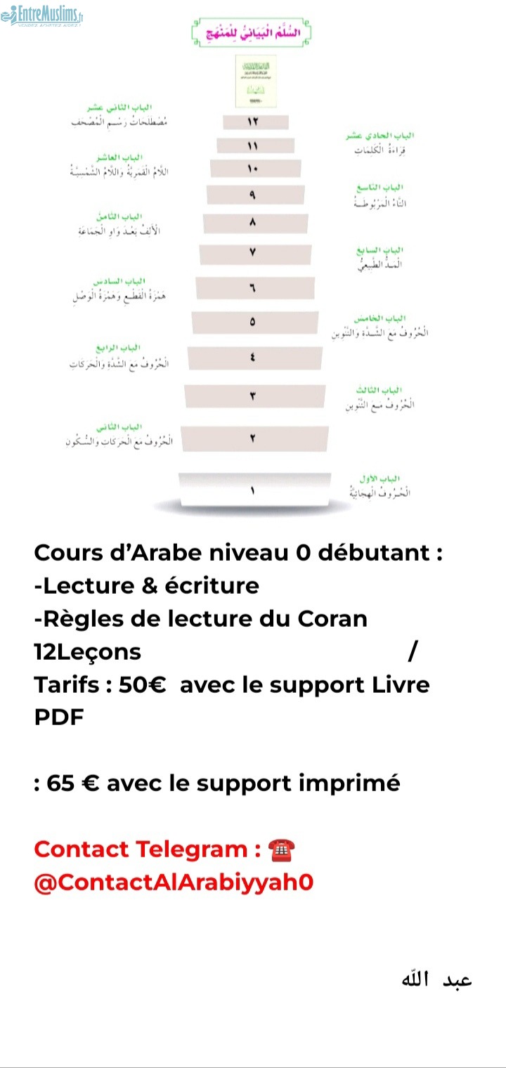 Je propose des cours d'Arabe niveau 0 pour les débutants francophones.