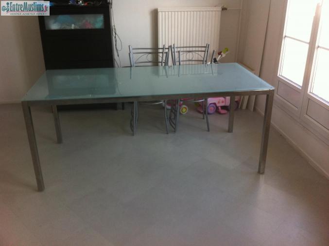 Je vends table en verre elle fait environ 1m80 prends 6 place voir plus tres bonne etat je la vends a 40€